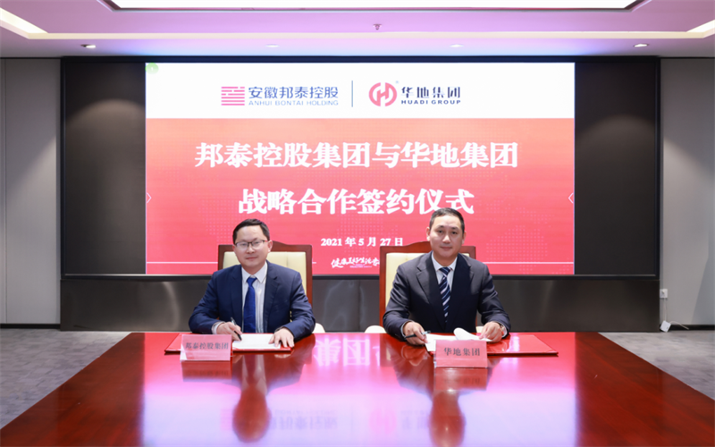 2021年5月27日,華地集團(tuán)與安徽邦泰控股集團(tuán)簽署戰(zhàn)略合作協(xié)議,雙方正式攜手,充分發(fā)揮自身優(yōu)勢,資源共享,攜手共贏,共建美好生活和城市新愿景。
