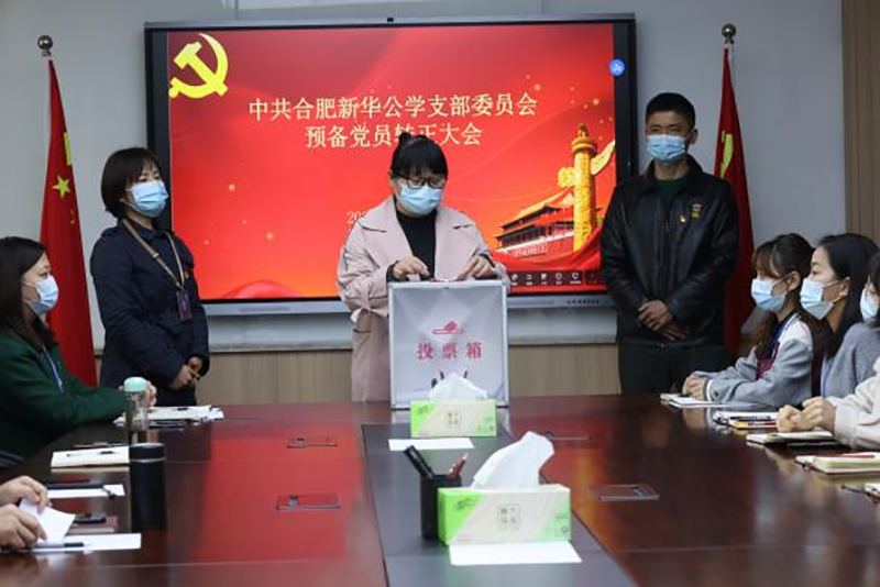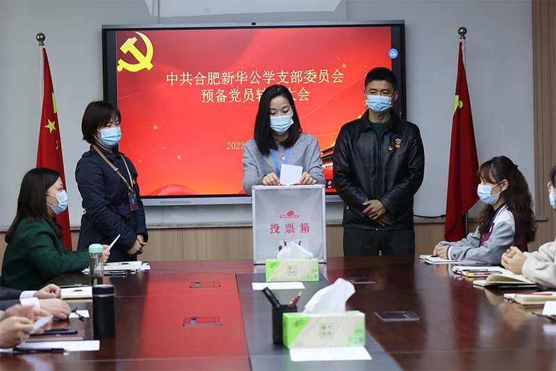 2022年3月31日,新華公學黨支部預備黨員轉(zhuǎn)正大會在六號樓五樓黨員活動室順利召開。新華公學黨支部全體黨員參加會議。會議由新華公學黨支部書記、總校長秦新春主持。