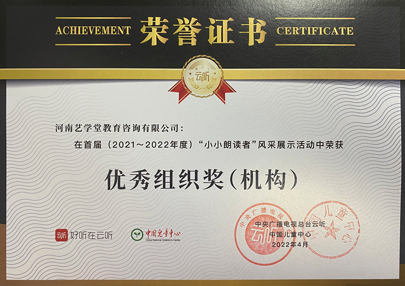 業(yè)內(nèi)認(rèn)可,載譽(yù)前行。合肥、鄭州、南昌、成都、濟(jì)南5大城市校區(qū)同步聯(lián)動(dòng),開(kāi)展“曹燦杯”青少年朗誦展示活動(dòng)、熱舞吧·少年街舞大賽、“花漾星主播”語(yǔ)言藝術(shù)大賽、電視臺(tái)少兒六一晚會(huì)等活動(dòng),獲得社會(huì)與家長(zhǎng)認(rèn)可,榮獲中央廣播電視臺(tái)頒發(fā)“優(yōu)秀組織獎(jiǎng)”,中國(guó)美術(shù)學(xué)院頒發(fā)“教學(xué)示范基地”、“優(yōu)秀教學(xué)基地”,市監(jiān)管局頒發(fā)“放心消費(fèi)示范單位”等稱號(hào)。