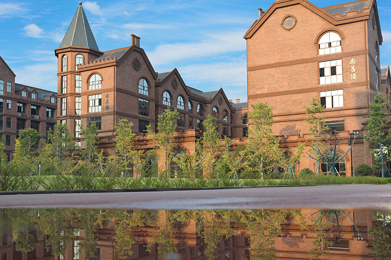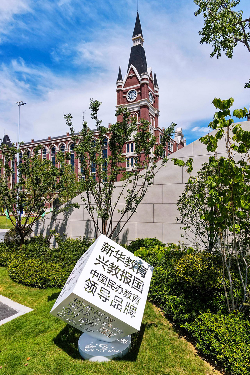 簡約的英式建筑與尖頂?shù)母呗栫姌?,錯落有致地散落在校園里,構(gòu)成新華藝術(shù)高級中學(xué)的獨(dú)特風(fēng)景線。