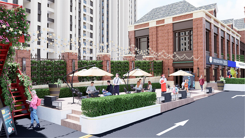龗龍街汲取地域特征靈感,將設(shè)計風(fēng)貌與場地內(nèi)的建筑風(fēng)格相協(xié)調(diào),融合綠色、多元、人性的設(shè)計理念,注重文化注入,以人情味、煙火氣的景觀營造給予人們返璞歸真的生活體驗,提升生活環(huán)境,升級商業(yè)能級。升級改造之后,預(yù)留更多活動空間,為居民制造更多獨特而有創(chuàng)意的活動,營造健康向上的生活方式,承載居民的情感訴求,帶來家門口有溫度的“情感鏈接場”,實現(xiàn)和諧共生的美好愿景。