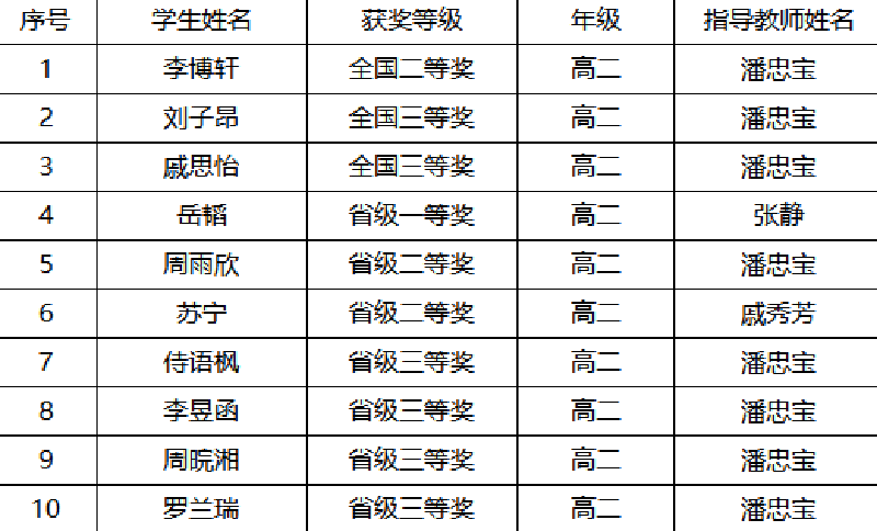 其中,高一年級孫澳同學(xué)獲得全國一等獎(jiǎng);高一年級馮慧琳、周佳樂、丁雨彤及高二年級李博軒等4位同學(xué)獲得全國二等獎(jiǎng);高一年級申非梵、汪行庫、何筱雅及高二年級劉子昂、戚思怡等5位同學(xué)獲得全國三等獎(jiǎng)。另有24位同學(xué)獲得省級一等獎(jiǎng)、二等獎(jiǎng)、三等獎(jiǎng)。