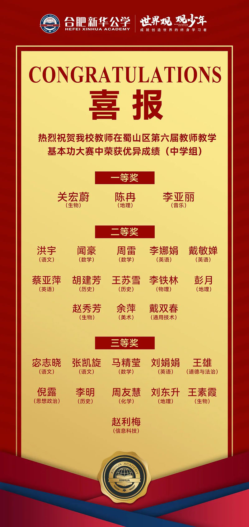 其中有3名教師喜獲一等獎(jiǎng)