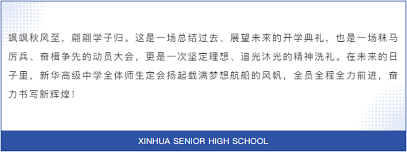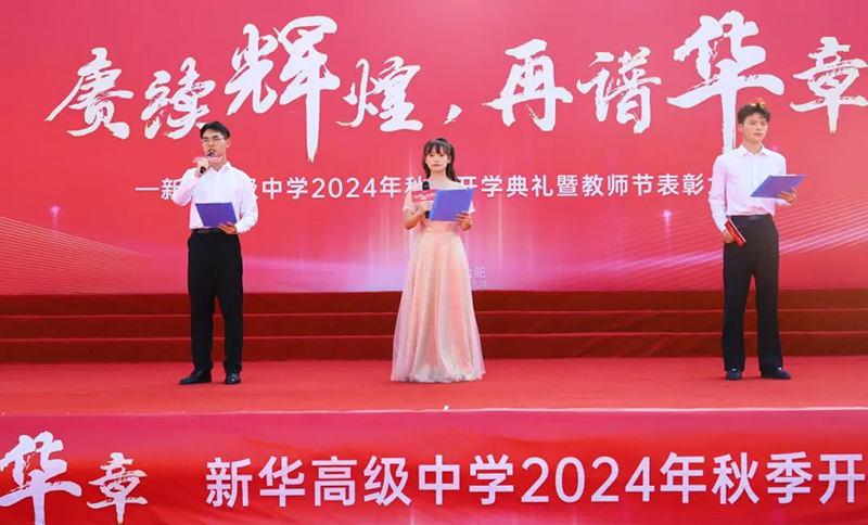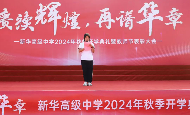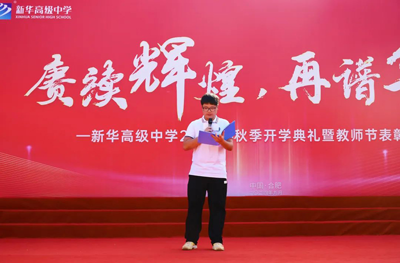 萬物積勢迎秋風(fēng),策馬揚鞭續(xù)輝煌。2024年9月10日上午,新華高級中學(xué)在校運動場隆重舉行2024年秋季開學(xué)典禮暨教師節(jié)表彰活動。新華高級中學(xué)校長徐邦民,副校長陳俊、王昌武、蔡賢滿、吳東、方明生等領(lǐng)導(dǎo)及全體師生齊聚一堂,共同見證了這一激動人心的時刻。新學(xué)期,新面貌,我們重新啟程!