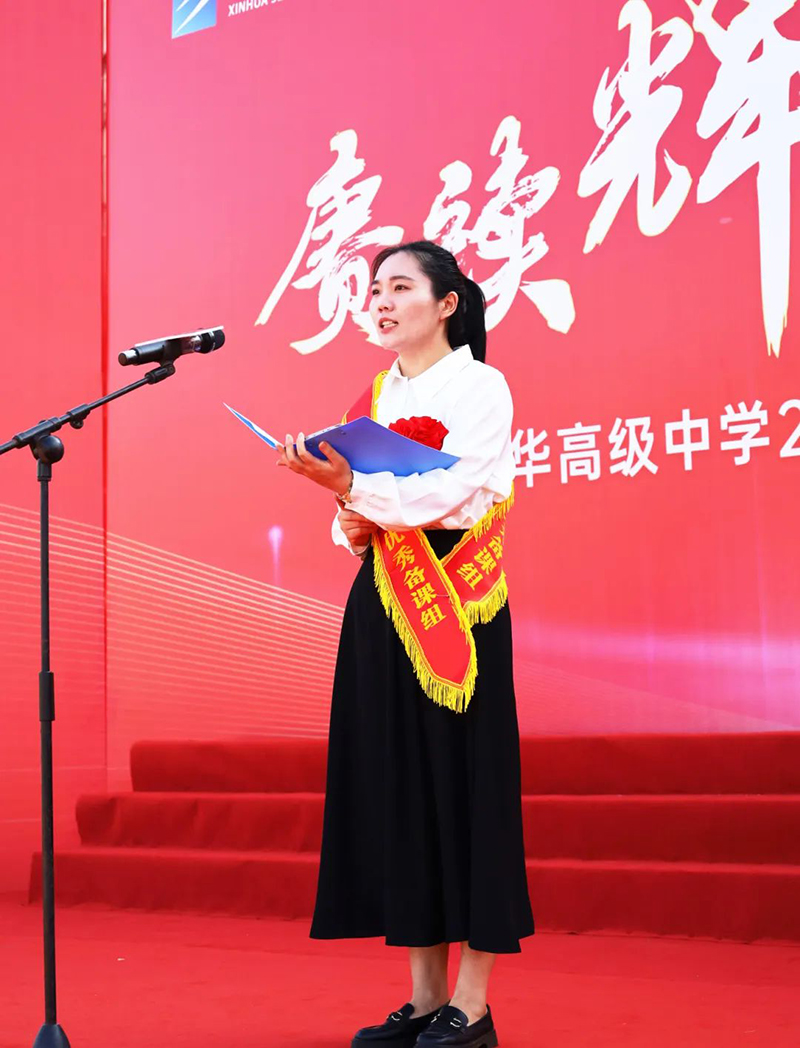 優(yōu)秀教職工代表宣夢玲老師發(fā)言。她希望高一年級同學(xué)能在新的征程上努力拼搏,以實際行動追逐夢想,并寄語高二、高三年級同學(xué)“筑夢”、“圓夢”,擁抱青春,挑戰(zhàn)自我,實現(xiàn)人生價值。