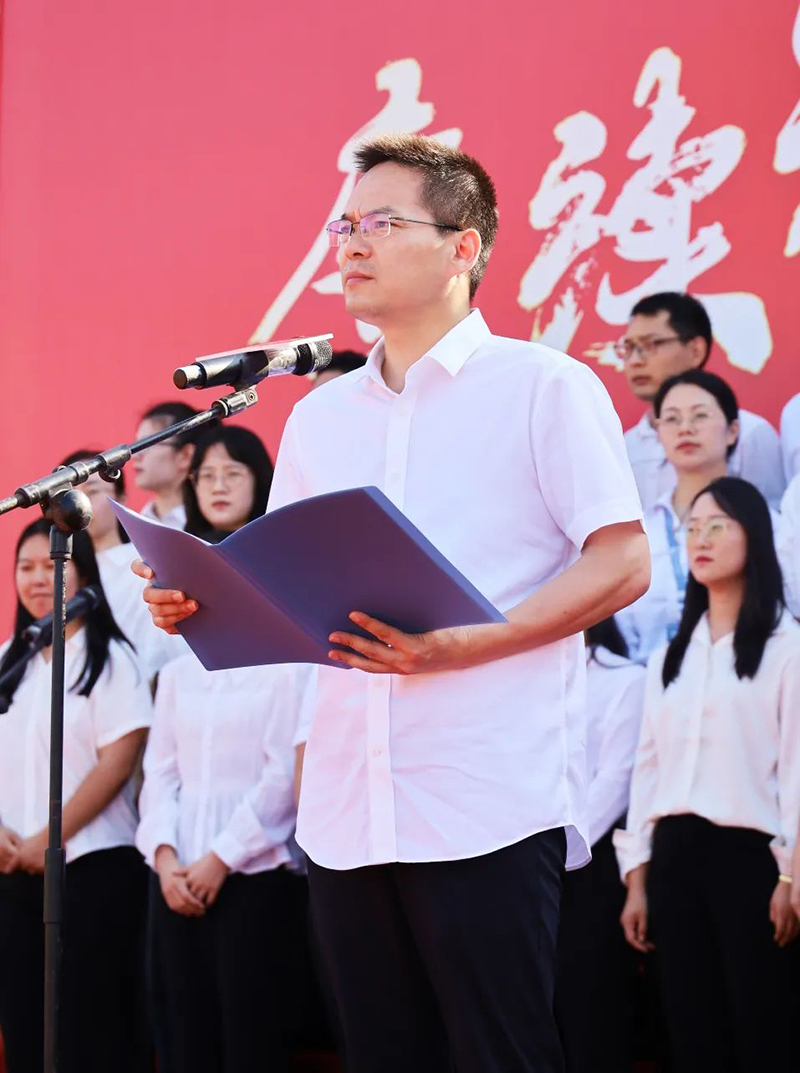 副校長陳俊領(lǐng)誓,全體高三教師宣誓
