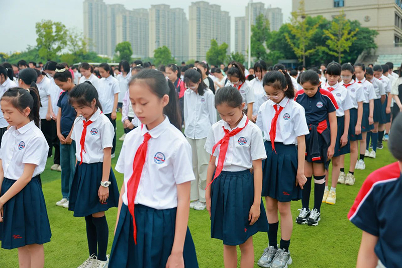此次演練結(jié)合中秋假期結(jié)束后的第一個(gè)升旗儀式一同舉行,演練結(jié)束后,同學(xué)們整齊列隊(duì),前往操場舉行升旗儀式。一陣莊重嚴(yán)肅的默哀后,總校長秦新春先生進(jìn)行了國旗下的講話。他帶領(lǐng)大家回顧了那段令國人屈辱的歷史,并告誡同學(xué)們要銘記歷史,勿忘國恥。同時(shí)要以史為誡,發(fā)憤圖強(qiáng),鑄牢中華民族共同體意識(shí),成為具有愛國主義底色的青少年。