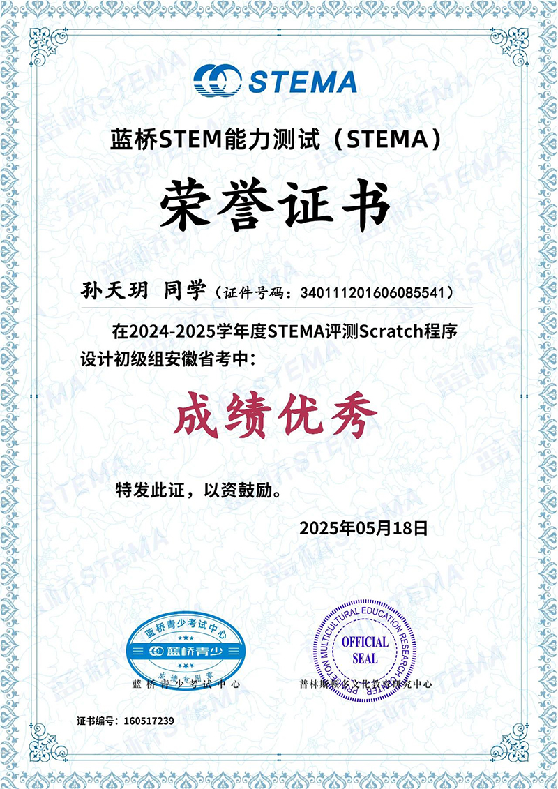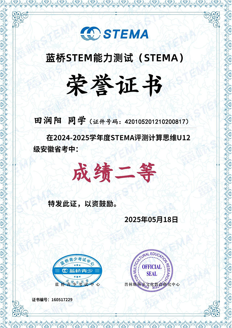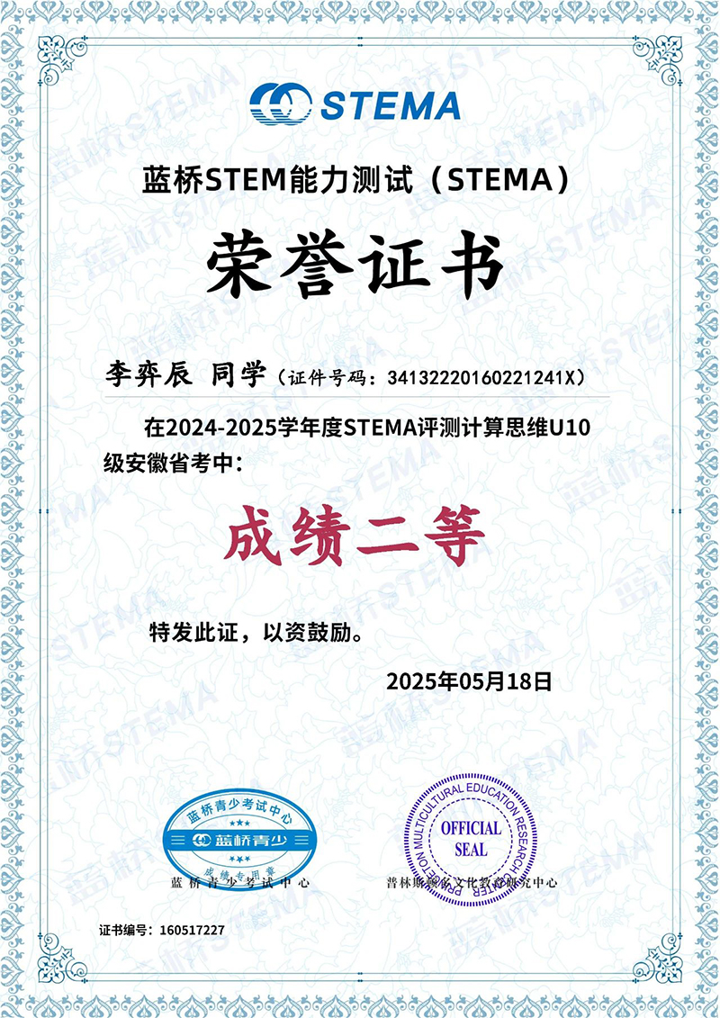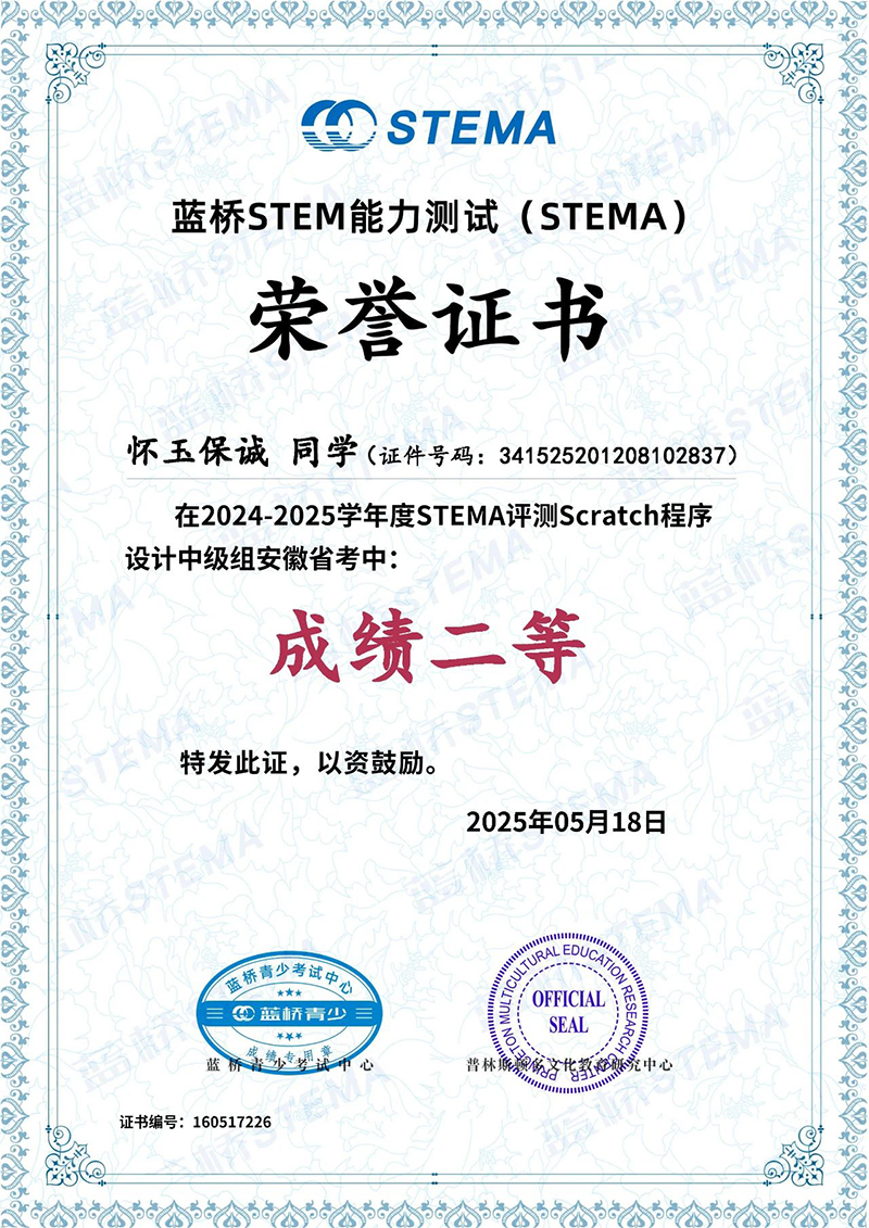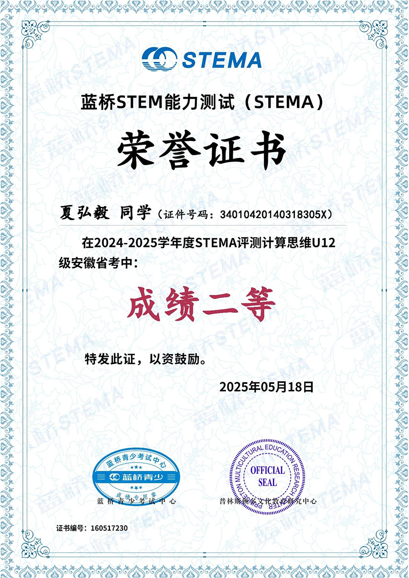 近日,藍橋STEMA安徽省考成績揭曉,我校多名學(xué)子在此次測評中脫穎而出、斬獲佳績,為學(xué)校爭得了榮譽。向所有獲獎同學(xué)致以最熱烈的祝賀!?