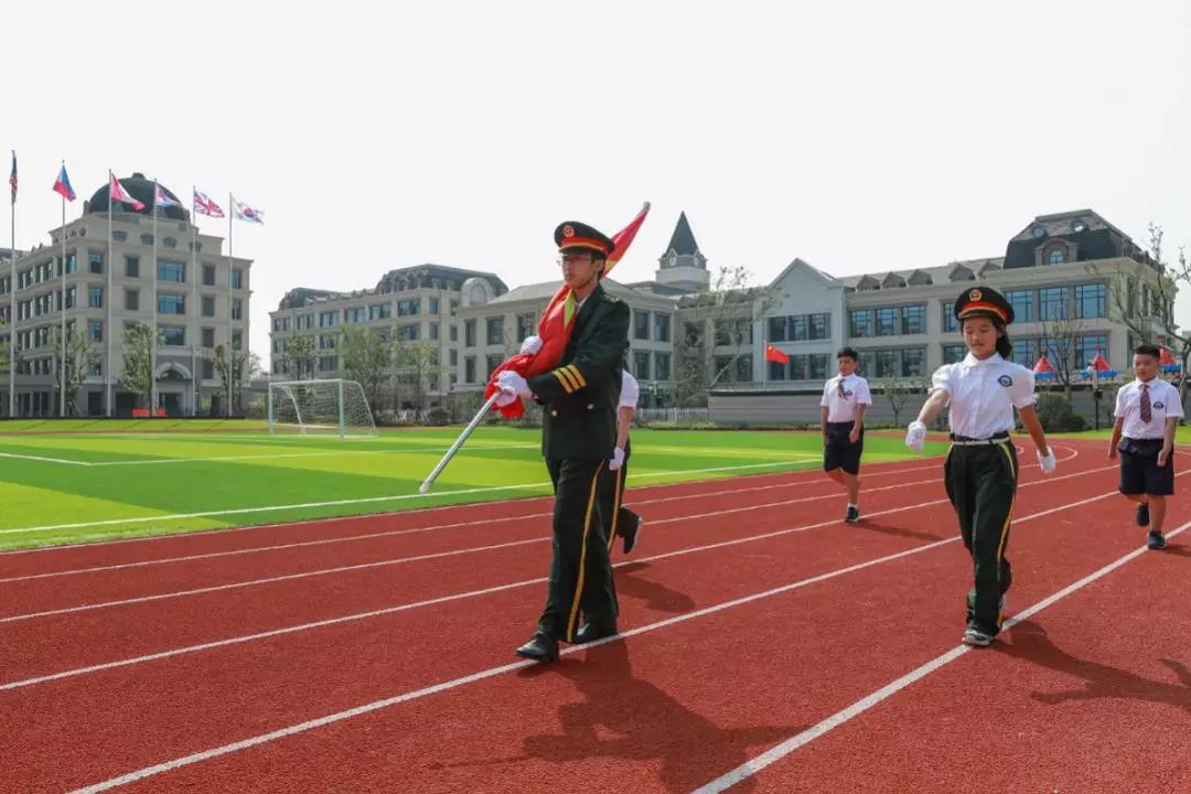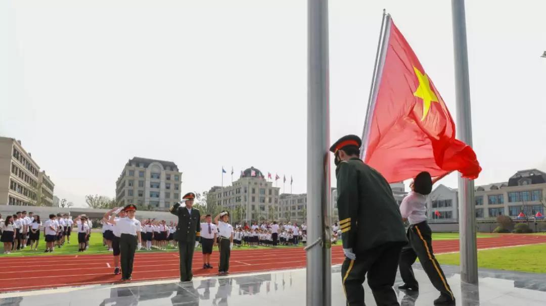升國(guó)旗、奏唱國(guó)歌,在高亢嘹亮的國(guó)歌聲中,五星紅旗冉冉升起。伴隨著五星紅旗一同迎風(fēng)飄揚(yáng)的,還有新華公學(xué)校旗,新華控股集團(tuán)司旗,一同見(jiàn)證著這一隆重而又莊嚴(yán)的時(shí)刻。