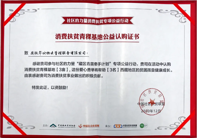 華地物業(yè)榮獲“中國(guó)社區(qū)扶貧聯(lián)盟理事單位”榮譽(yù)稱號(hào)