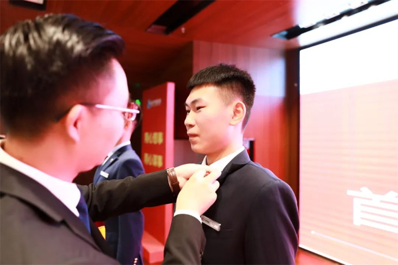 華地好生活集團總經(jīng)理羅星星為優(yōu)秀學員佩戴郁金香徽章