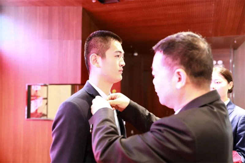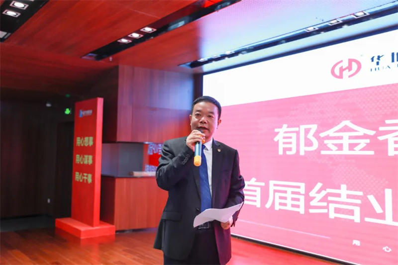 華地好生活集團董事長管玉社為優(yōu)秀學員佩戴郁金香徽章