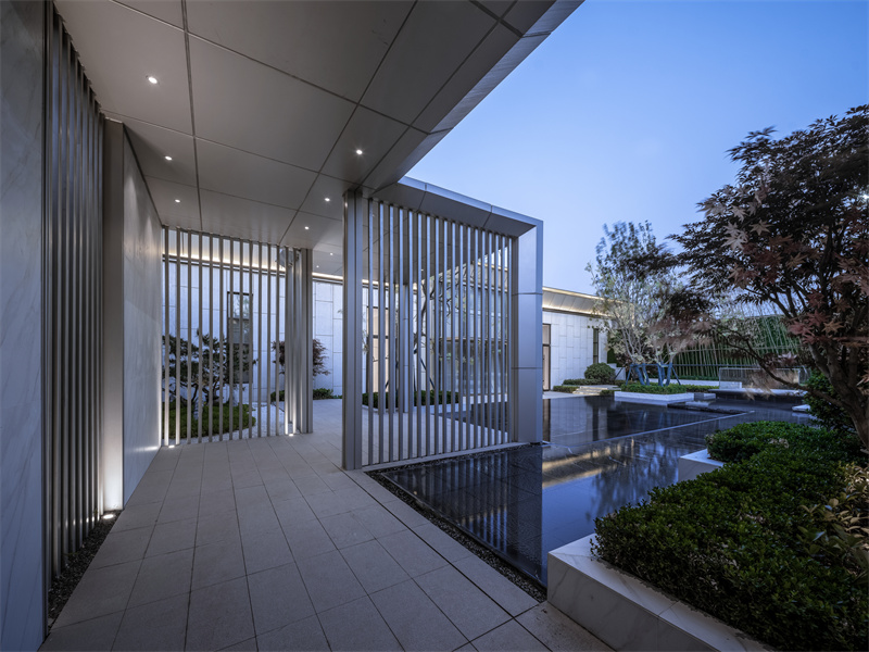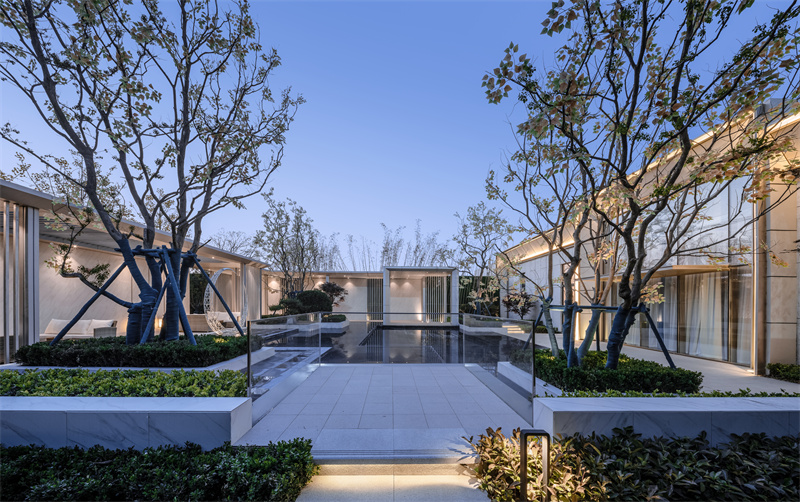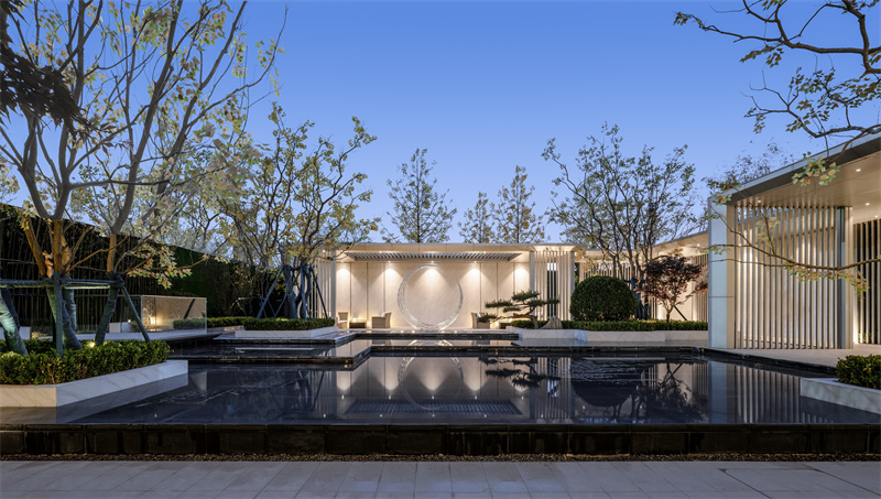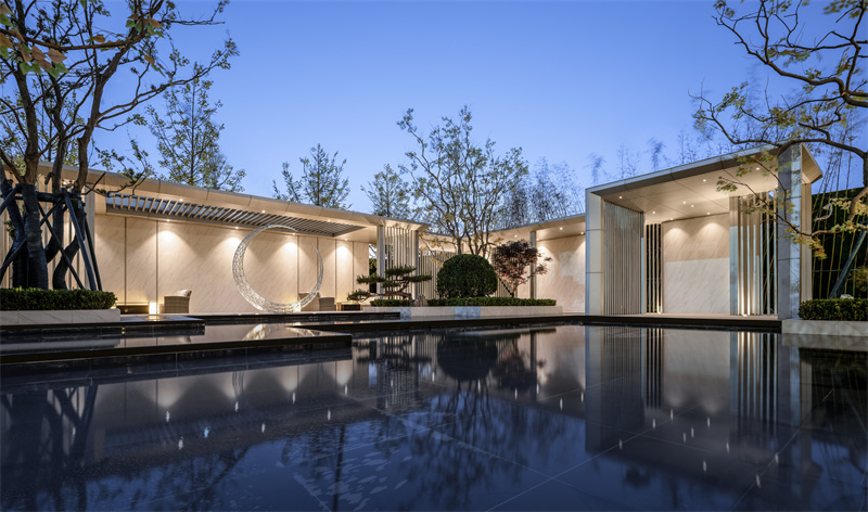 前場(chǎng)精細(xì)的鋪裝排版,黑灰間隔,配上灑脫跳躍的航道燈。使之與售樓處內(nèi)燈火遙相呼應(yīng),呈現(xiàn)出一片高貴典雅的氣質(zhì),仿佛在訴說(shuō)著屬于拾光里的故事。