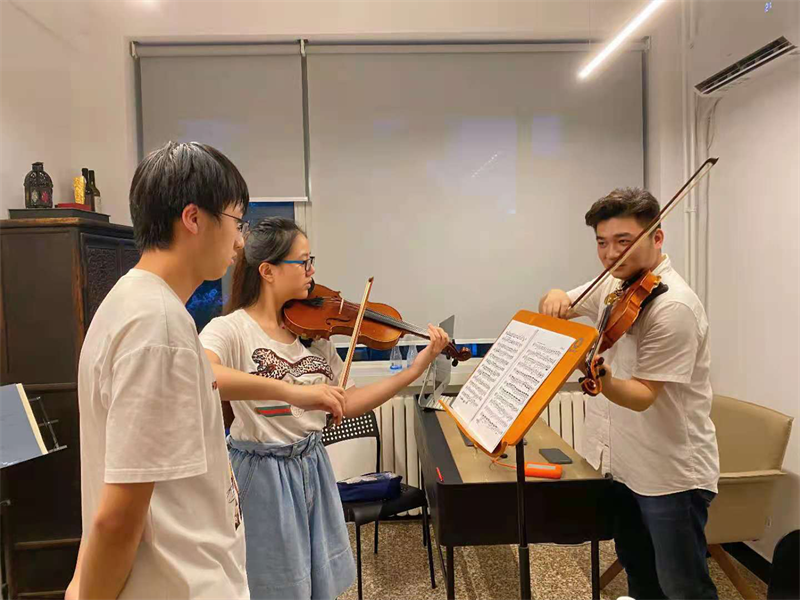 7月17號兩位同學(xué)到達北京,我們邀請到中央音樂學(xué)院副教授、“琥珀四重奏”中提琴演奏家,德國柏林藝術(shù)大學(xué)博士獨奏家文憑獲得者戚望教授給兩位同學(xué)進行賽前指導(dǎo)。戚望教授在指導(dǎo)中指出合作的意義,并針對兩位同學(xué)的不足進行了示范以及講解,并且為兩位選手加油鼓勁。