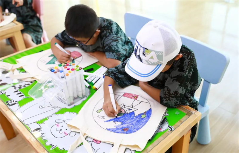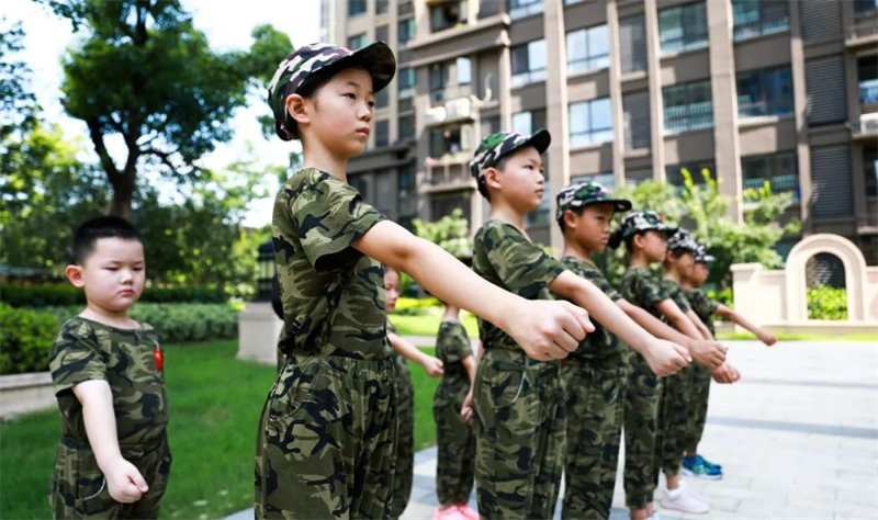 整齊劃一的“迷彩方隊”,無疑是今夏園區(qū)內(nèi)最靚麗的風景線。堅定的眼神,挺直的身軀,展現(xiàn)了小小特種兵的颯爽英姿。