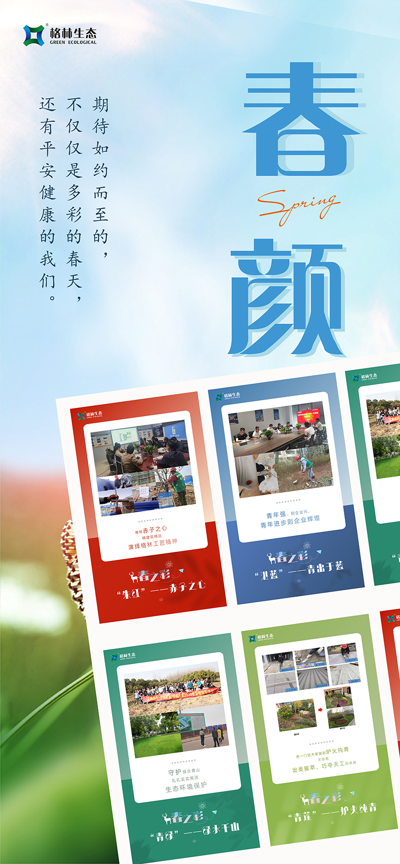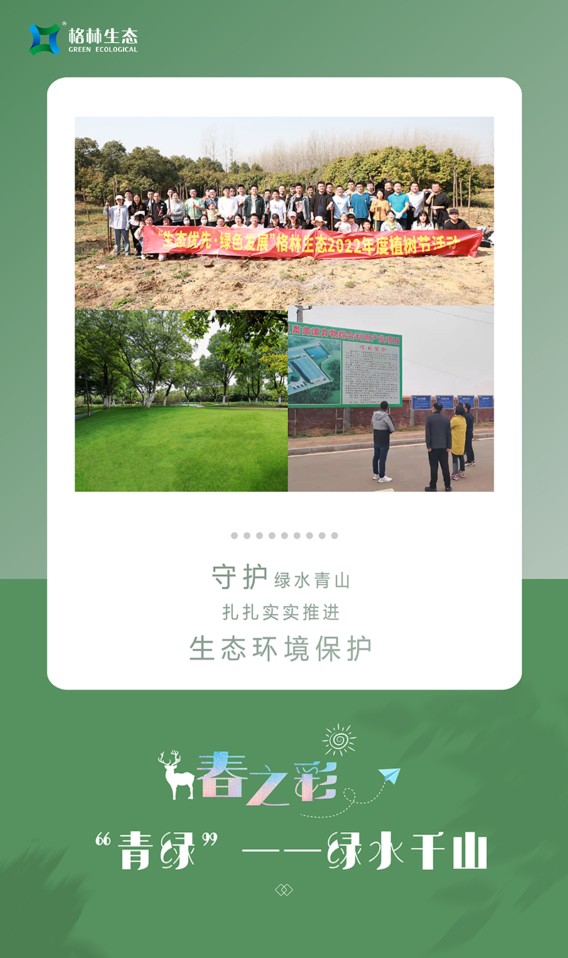 我們牢記“綠水青山就是金山銀山”的生態(tài)理念,每年開展植樹活動,今年共植三百余株欒樹和紅葉石楠球,讓綠色在大地蔓延;與此同時,格林生態(tài)積極履行社會責任,強化集約節(jié)約理念,與合作伙伴協同做好污水處理改善,促進水生態(tài)環(huán)境持續(xù)改善,努力實現經濟發(fā)展和生態(tài)環(huán)保雙贏目標?,F如今正是楊柳青青、草長鶯飛之時,傲人的青山綠水正在以秀美優(yōu)雅的姿態(tài)展現出來!