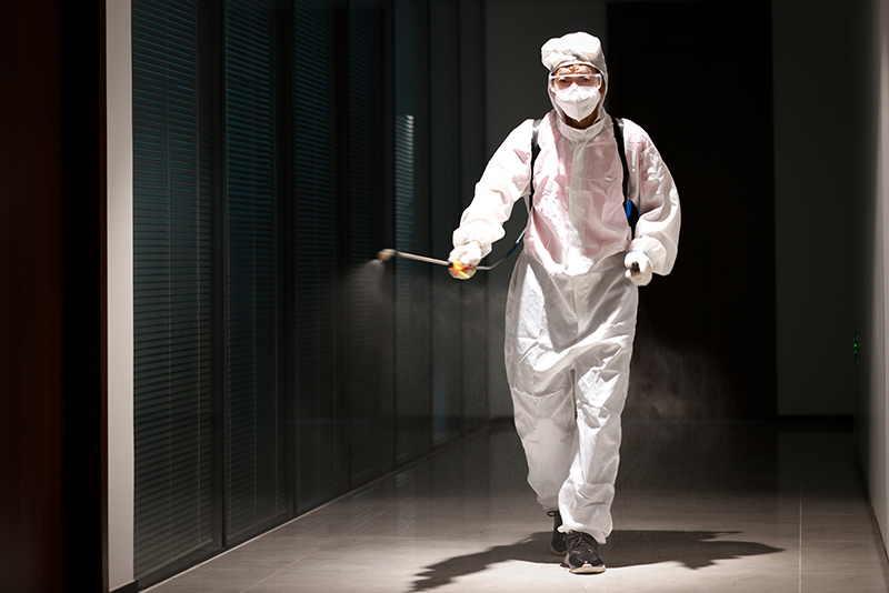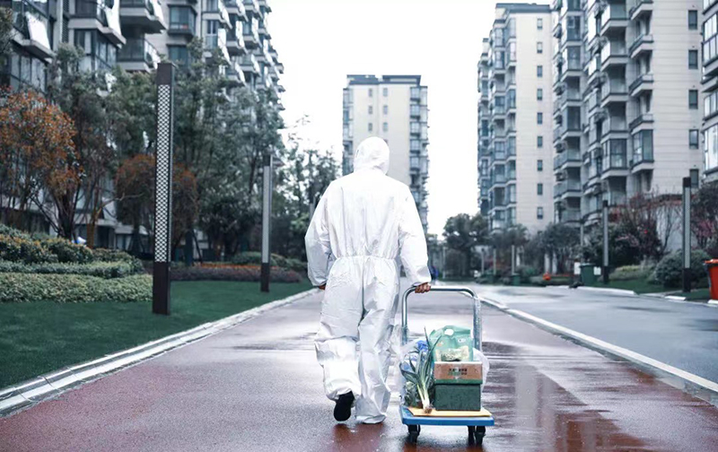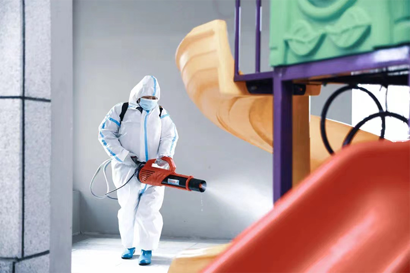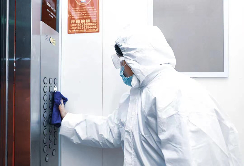 當(dāng)白天的喧囂褪去,夜幕降臨時,他們穿著防護(hù)服的身影總是隨處可見,對寫字樓、園區(qū)全部棟樓的公共區(qū)域,進(jìn)行反復(fù)的消殺并記錄?;蛟S,大白的口罩和防護(hù)服遮擋了他們的容顏,但是他們?yōu)闃I(yè)主的心卻在此刻熠熠生輝。
