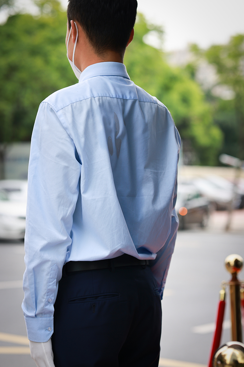 不論嚴(yán)寒酷暑,他始終以最挺拔的姿態(tài)面向客戶。在遇到高溫天氣的時候,對于普通人來說站上半天也受不了,而這些物業(yè)人員,一站就是12小時。有人對他說不用這么努力,畢竟就是打一份工而已,可他卻說“不管打工與否,畢竟我們是做服務(wù)的,服務(wù)好廣大業(yè)主就是我們最大的責(zé)任與義務(wù)”,一句樸實的話語,卻有著直擊人心的震撼。
