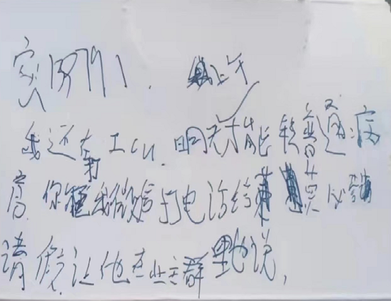 2022年3月25日臨近下班,李娜腹部突發(fā)疼痛。卻因業(yè)主交代的事情沒有完成,不愿就醫(yī),最后疼痛難忍,不得不住進(jìn)ICU病房。她醒來后第一件事是找紙筆用微弱的氣力寫下了最樸實的文字,讓同事告知業(yè)主她生病的消息。因為她擔(dān)心業(yè)主生病期間,無法及時解決業(yè)主問題。與優(yōu)秀者同行,與奮斗者共進(jìn),致敬在平凡崗位認(rèn)真工作,努力付出的李娜。