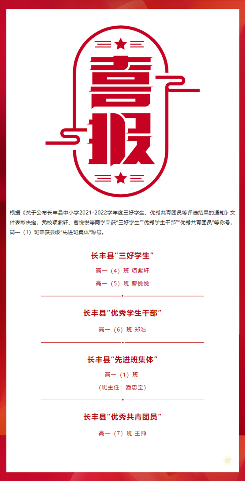 謹(jǐn)向受表彰同學(xué)和班級表示祝賀!