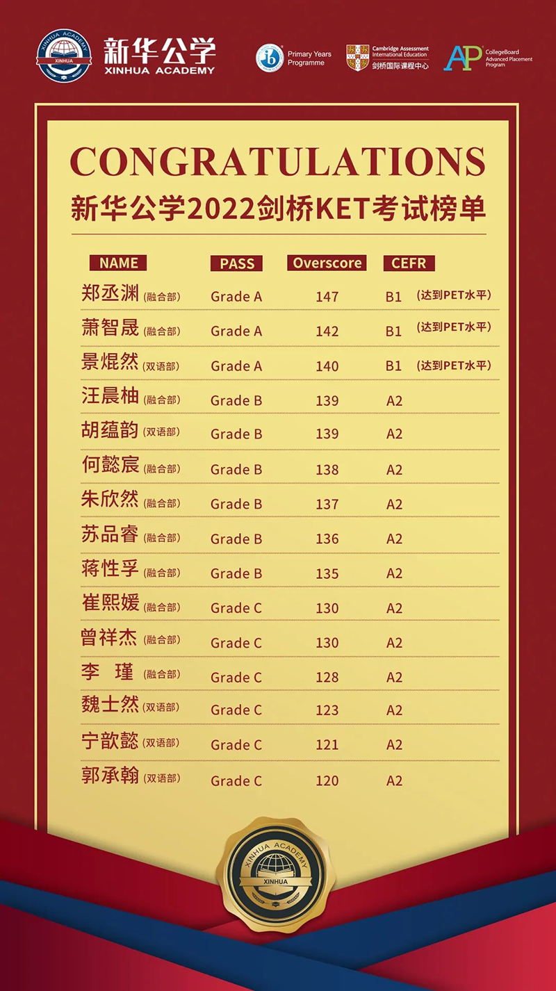 2022劍橋KET考試榜單新鮮出爐