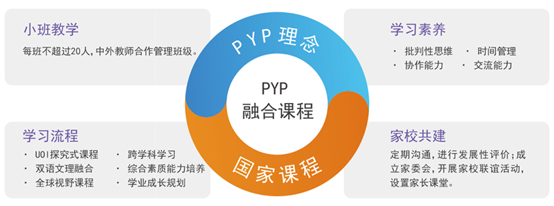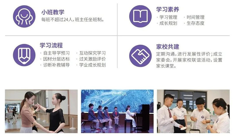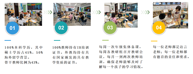 小學(xué)課程與教學(xué)活動(dòng)圍繞興趣培養(yǎng)、學(xué)習(xí)技能及思維方式進(jìn)行編排;各學(xué)科中外教師共同備課,幫助學(xué)生建立廣泛的知識(shí)關(guān)聯(lián);設(shè)置多學(xué)科融合探究,提升學(xué)科素養(yǎng);分層教學(xué)模式及項(xiàng)目式合作學(xué)習(xí),針對(duì)性提高學(xué)生的學(xué)術(shù)水平;鼓勵(lì)學(xué)生參與實(shí)踐活動(dòng),提高學(xué)生獨(dú)立思考與合作創(chuàng)新能力。
