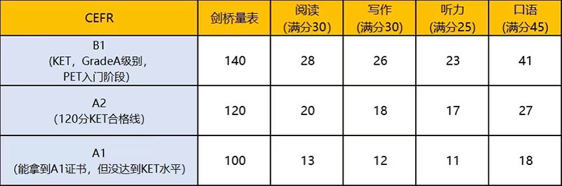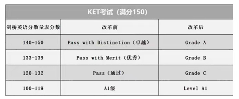下面我們來(lái)看看KET分?jǐn)?shù)要求: