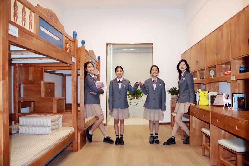 學(xué)校采用全封閉寄宿制管理,住宿環(huán)境為四人間,實木床,24小時冷熱水,24小時冷暖空調(diào),24小時校醫(yī)、宿管、老師陪伴、開通親情電話……宿舍不只是孩子睡覺的地方,也是精神家園,在這里感受家的溫暖。