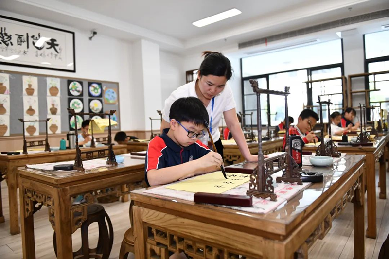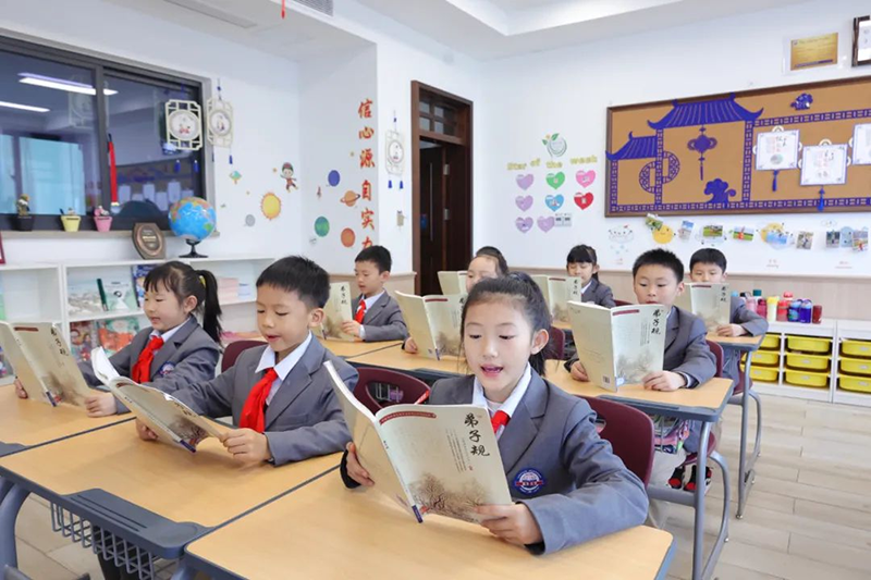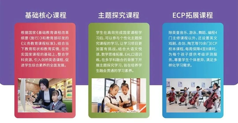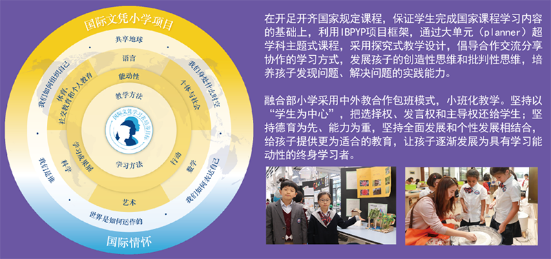 在完成國家規(guī)定課程的基礎(chǔ)上,強化語文、數(shù)學(xué)、歷史、政治等課程教學(xué),融合課程由外教進行授課,包括英語文學(xué)、數(shù)學(xué)、戲劇和科學(xué)等主修課程。