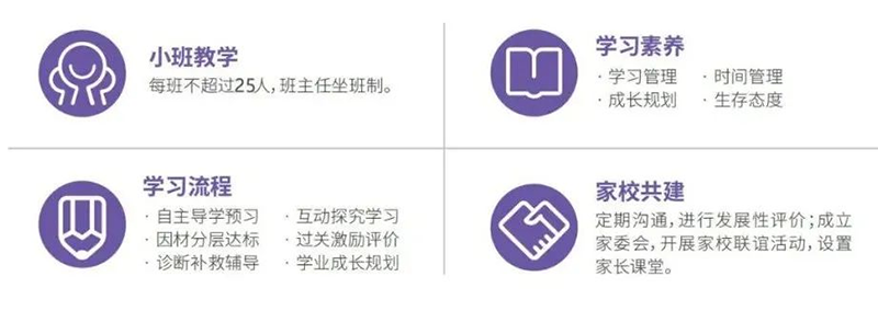 為了完美地銜接高中,我們在孩子入校開始,就為孩子進行升學(xué)規(guī)劃,并將升學(xué)課程融入日常課表中。