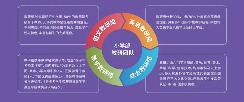 小學(xué)課程與教學(xué)活動圍繞興趣培養(yǎng)、學(xué)習(xí)技能及思維方式進行編排;各學(xué)科中外教師共同備課,幫助學(xué)生建立廣泛的知識關(guān)聯(lián);設(shè)置多學(xué)科融合探究,提升學(xué)科素養(yǎng);分層教學(xué)模式及項目式合作學(xué)習(xí),針對性提高學(xué)生的學(xué)術(shù)水平;鼓勵學(xué)生參與實踐活動,提高學(xué)生獨立思考與合作創(chuàng)新能力。