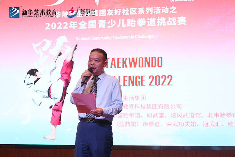 活動(dòng)伊始,新華控股集團(tuán)副總裁、華地好生活集團(tuán)董事長管玉社做開幕動(dòng)員,他表示:“華地好生活集團(tuán)始終以“用心筑造美好生活”為服務(wù)愿景,用心構(gòu)筑美好社區(qū)服務(wù)體系,通過兒童友好和教育友好社區(qū)服務(wù),不斷為青少兒成長提供多維助力。此次華地好生活集團(tuán)聯(lián)合藝學(xué)堂充分發(fā)揮雙方優(yōu)勢(shì)開展跆拳道挑戰(zhàn)賽,不僅為廣大青少兒提供更多藝術(shù)展示機(jī)會(huì),同時(shí),也致力于發(fā)揚(yáng)團(tuán)結(jié)、友誼、進(jìn)步的體育精神,展現(xiàn)青少兒時(shí)代風(fēng)采。”