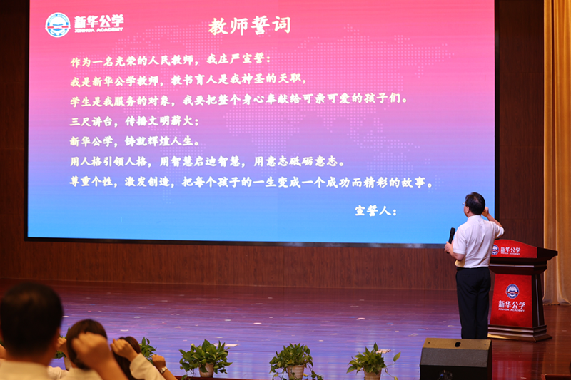 頒獎儀式最后,全體教師莊嚴(yán)宣誓,永葆教育初心,不負(fù)使命??梢娢ㄓ衅椒?,才見高貴;唯有辛勞,方得始終。正是老師們這種付出和奉獻(xiàn),使茁壯成長中的新華公學(xué)管理規(guī)范,課程特色彰顯,教育質(zhì)量穩(wěn)步提升,學(xué)生競賽頻頻獲獎,家長好評紛至沓來。
