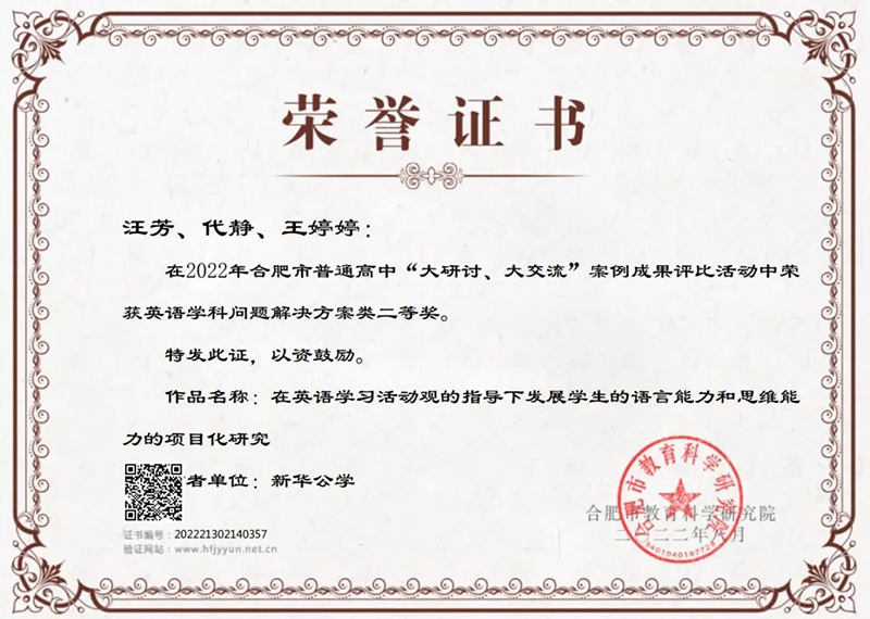 除了學(xué)校內(nèi)部的表彰以外,新華公學(xué)多位教師榮獲合肥市獎項(xiàng),這更是對我校教師教學(xué)水平及師德師風(fēng)的肯定與贊揚(yáng)。