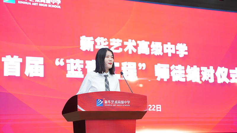 校長助理吳東宣讀師徒結對名單,并殷切期待藍青教師可以齊頭并進,星火相傳,共同為新華藝術高級中學的發(fā)展貢獻自己的才智和力量。