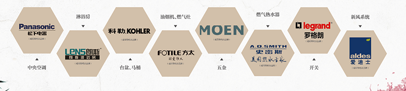 全屋裝配松下中央空調(diào)、愛迪士新風(fēng)系統(tǒng)、科勒衛(wèi)浴、A.O.史密斯燃?xì)鉄崴鳌⒛Χ魑褰?、朗斯淋浴房、方太油煙機(jī)燃?xì)庠?、羅格朗開關(guān)八大高端家居品牌,全方位的貼心考量,無所不在的人性化精裝細(xì)節(jié),讓生活愈加精致。