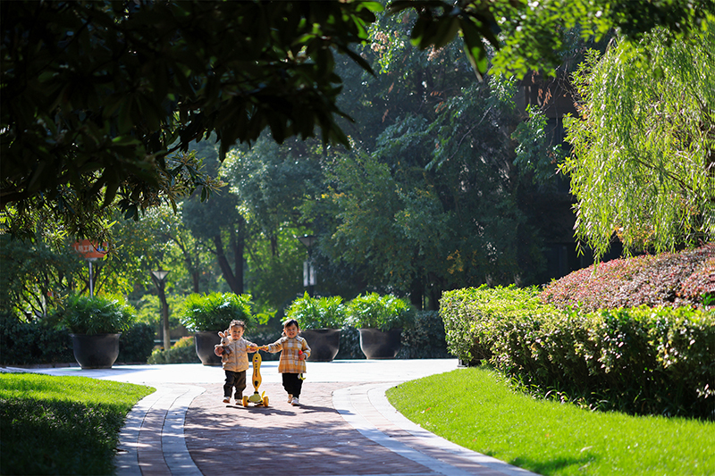 林蔭芳草錯(cuò)落蓬勃,渲染一片詩(shī)意天地,承載著寶貝天真的情態(tài)、記錄下家人幸福的笑顏。這份綠意盈懷的美好,是自然的恩賜,更離不開(kāi)華地對(duì)景觀營(yíng)造的細(xì)致用心。
