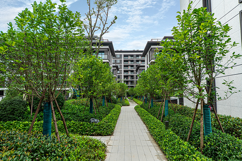 造園的匠心更是曠日持久,為營(yíng)造豐富的歸家體驗(yàn)感,因地制宜、收放開(kāi)合、曲折布景,為業(yè)主營(yíng)造“居士高蹤何處尋,居然城市有山林”的情境。