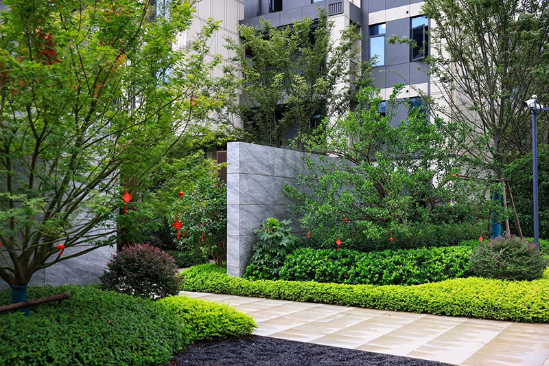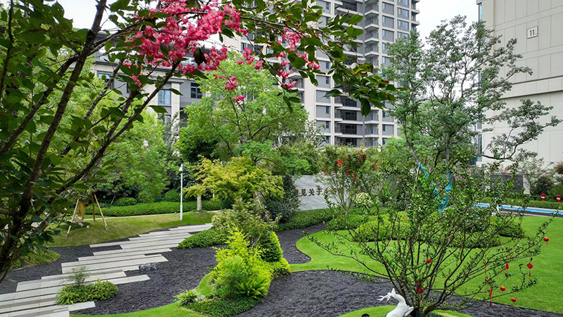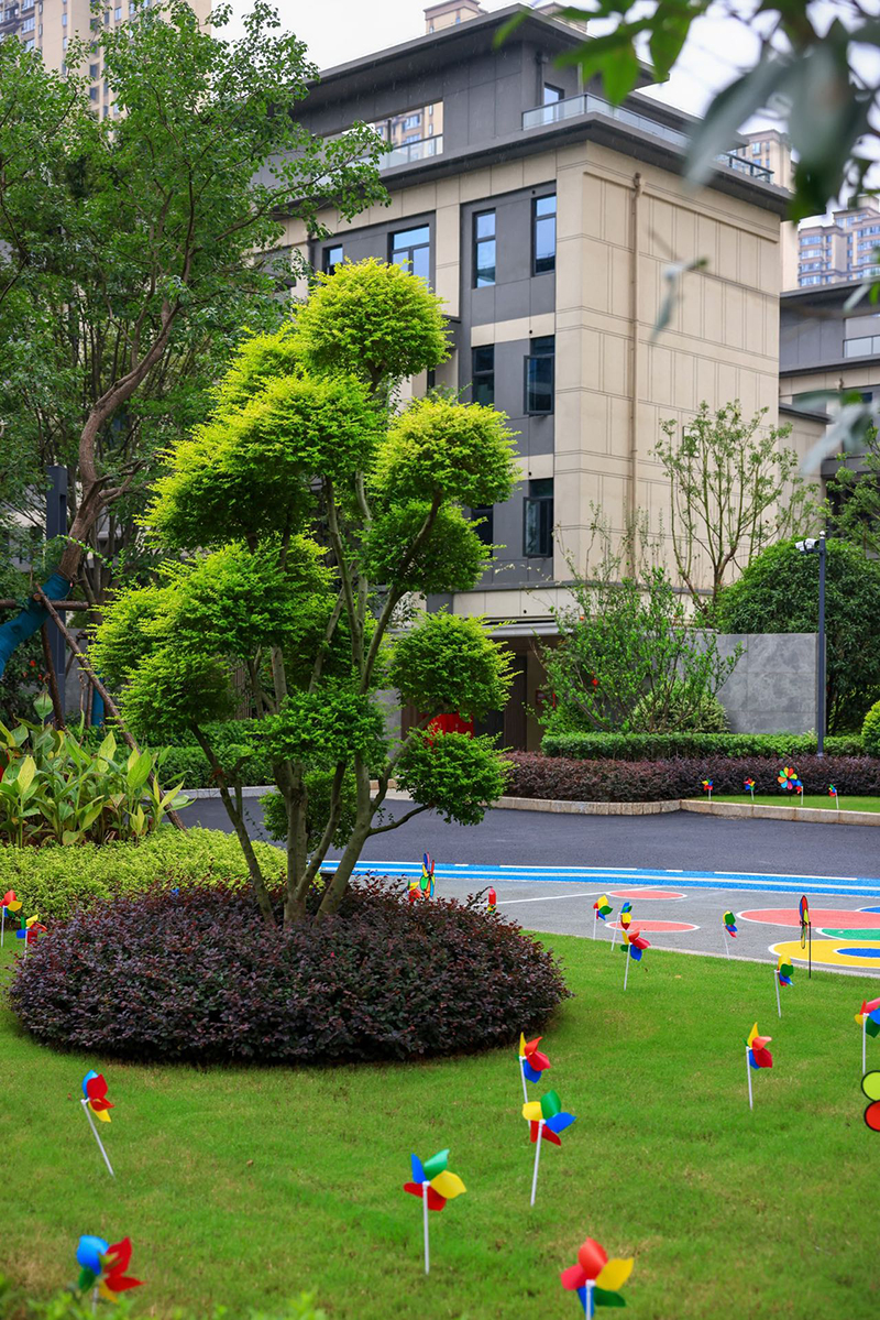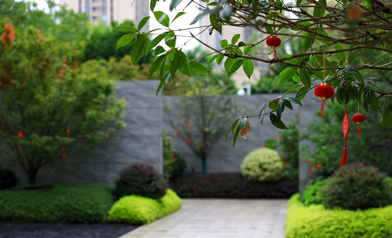 長青喬木、應(yīng)時花草一起組成,春花、夏蔭、秋聲、冬藏的畫境開啟歸家漫時光,漫步其中,移步異景如畫卷層層鋪展。