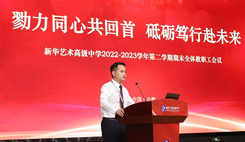 盛情夏季,桃李芬芳;潛心育人,賡續(xù)前行。為發(fā)揮黨建的引領(lǐng)作用,推動(dòng)學(xué)校工作高質(zhì)量發(fā)展,凝聚新征程再出發(fā)的奮進(jìn)力量,7月11日下午,新華藝術(shù)高級(jí)中學(xué)全體教職員工歡聚一堂,隆重召開以“勠力同心共回首,砥礪篤行赴未來”為主題的2022-2023學(xué)年第二學(xué)期期末全體教職工會(huì)議。新華藝術(shù)高級(jí)中學(xué)校長(zhǎng)邵忠德,副校長(zhǎng)蔡賢滿、李愛國(guó)、吳東、方明生等領(lǐng)導(dǎo)及全體教職員工參加,大會(huì)由黨政辦公室主任夏娟娟主持。