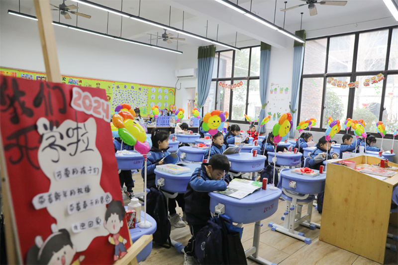 老師精心布置的教室,嶄新的課本與書桌,每一個細節(jié),每一個角落,都在述說著一整個假期的思念。