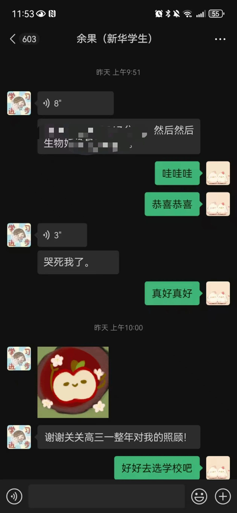 遇良師,終生幸焉。每當我擁有學習上的疑問時,回顧望去,總能找到老師們們的身影;每當青春的疼痛來臨,我不用去尋找,因為他們肯定堅定的在我身后。學生朽木,卻遇良師。感謝所遇的新華每一位任課老師,班老師、兩位董老師、商老師、楊老師、關老師、蘇老師、王老師、代老師、胡老師、張老師,我可能只是你們所遇莘莘學子中的一位,但你們永遠是我的人生不可或缺的一絲溫暖。